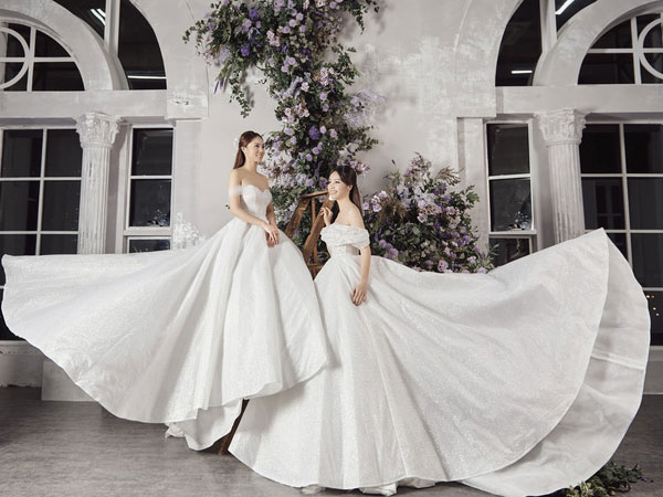 Bạn gái NSND Công Lý bất ngờ diện váy cưới, đọ sắc cùng chị họ - Á hậu Thụy Vân