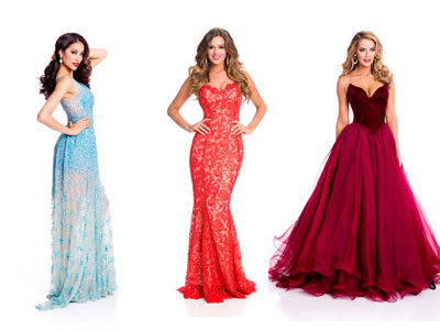 Ngay sau buổi chụp hình áo tắm, các thí sinh Hoa hậu Hoàn vũ lại có dịp khoe dáng trước ống kính trong trang phục đầm dạ hội quyến rũ.