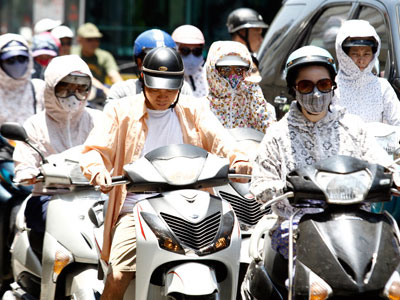 Vật vã với cái nắng Sài Gòn, đến nam giới cũng phải trùm kín mít khi ra đường