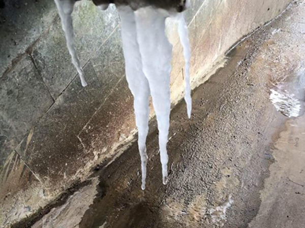 Nhiệt độ giảm sâu khiến sương, hơi nước đọng trên sàn gỗ, gờ đá... tạo thành lớp băng mỏng.