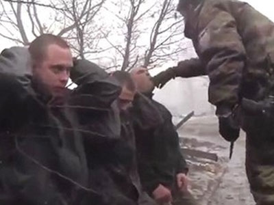 Sau khi quát mắng các binh sĩ Ukraine bị bắt, chiến binh ly khai dùng dao xẻo phù hiệu của họ và bắt họ phải ăn hết.