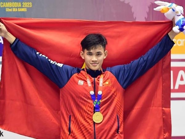 Kình ngư Nguyễn Huy Hoàng vinh dự được lựa chọn cầm cờ cho Đoàn Thể thao Việt Nam tại SEA Games 32 trên đất Campuchia.