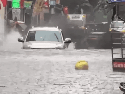 Hà Nội ngày 30/9 mưa xối xả, đường phố biến thành sông, giao thông khó khăn, ảnh hưởng do hoàn lưu cơn bão số 10.