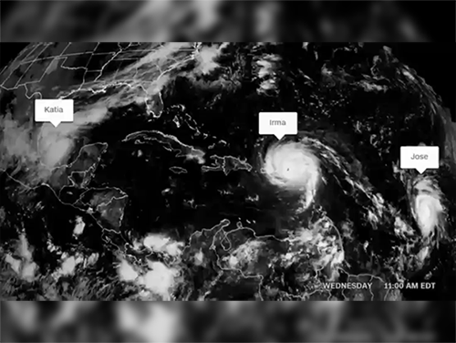 Cùng với siêu bão Irma đang tiến vào Mỹ, hai cơn bão khác cũng hình thành ở Đại Tây Dương là Katia và Jose khiến nhiều người lo ngại.
