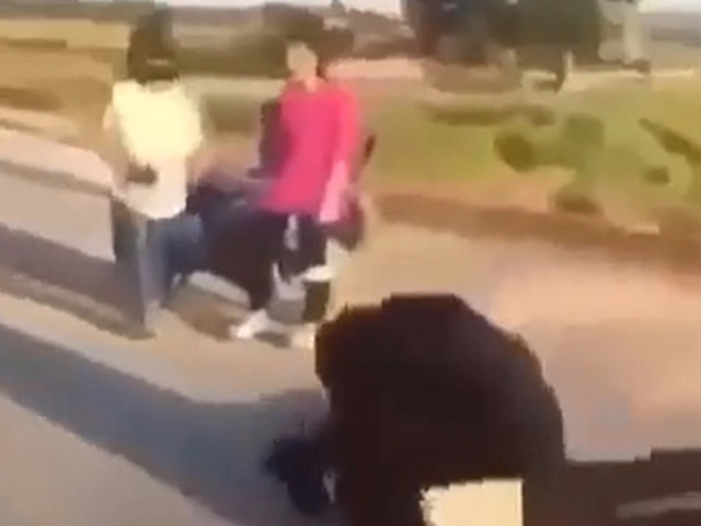 Đoạn clip ghi lại cảnh nữ sinh bị đánh, lúc này có nhiều người xung quanh nhưng không ai can ngăn, cho đến khi nữ sinh nằm gục giữa đường.