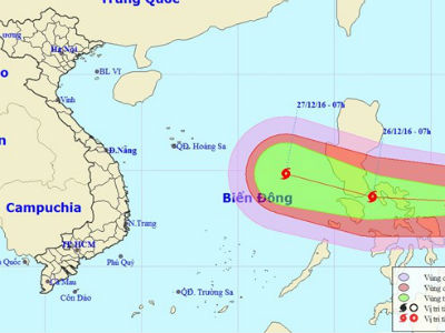 Dự báo trưa nay, cơn bão Nockten giật cấp 15-16 đi vào giữa biển Đông.