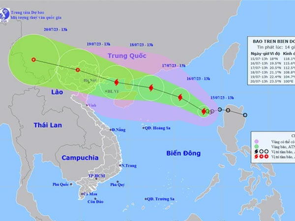 Theo Trung tâm Dự báo khí tượng thuỷ văn Quốc gia, hồi 04 giờ ngày 01/7, vị trí tâm bão ở vào khoảng 17,8 độ Vĩ Bắc; 114,6 độ Kinh Đông, cách quần đảo Hoàng Sa khoảng 360km về phía Đông Đông Bắc.