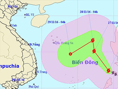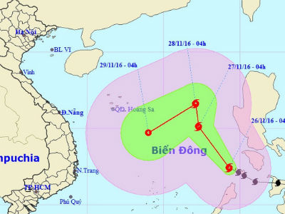 Sáng sớm nay (26/11), bão Tokage đã vào Biển Đông, trở thành cơn bão số 9 năm 2016. Do ảnh hưởng của bão, vùng biển phía Đông khu vực giữa biển Đông có gió mạnh cấp 6-7, vùng gần tâm bão đi qua cấp 8-9, giật cấp 10-11, sóng biển cao 3-5 mét. Biển động rất mạnh.