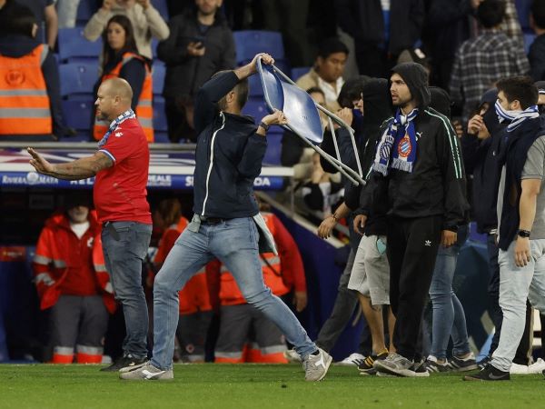 Nhóm CĐV quá khích của Espanyol tràn xuống sân để tấn công các cầu thủ Barca, trong lúc đội khách ăn mừng chức vô địch La Liga sớm 4 vòng đấu.