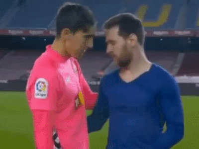 Thủ môn Edgar Badia ngỡ ngàng khi được Lionel Messi đề nghị đổi áo đấu sau trận Barca thắng Elche 3-0 trên sân Nou Camp.
