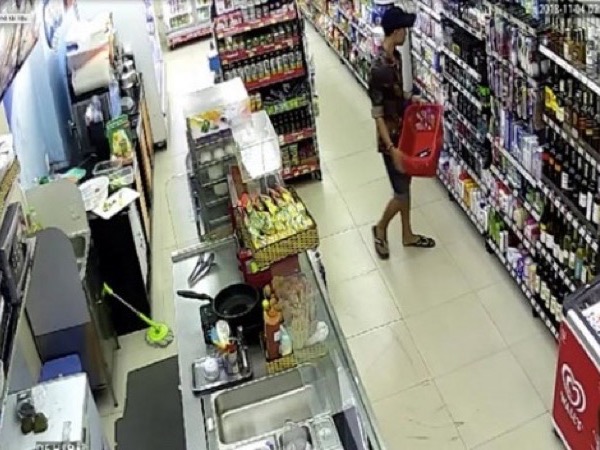 Sau khi lấy chai nước, kẻ cướp đã khống chế nữ nhân viên cửa hàng tiện lợi ở TP HCM lấy tiền và điện thoại rồi nhanh chóng rời khỏi cửa hàng.
