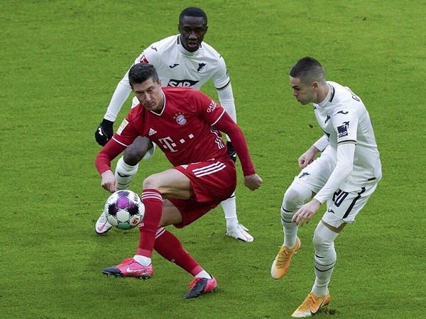 Tiền đạo Robert Lewandowski ghi bàn trong chín trận liên tiếp ở Bundesliga, giúp Bayern thắng đội khách Hoffenheim 4-1 hôm 30/1.