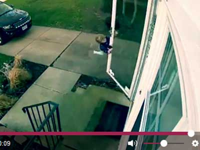 Video bé gái người Mỹ bị gió thổi bay, đung đưa trên cánh cửa thu hút hơn 100.000 lượt xem trên mạng xã hội.