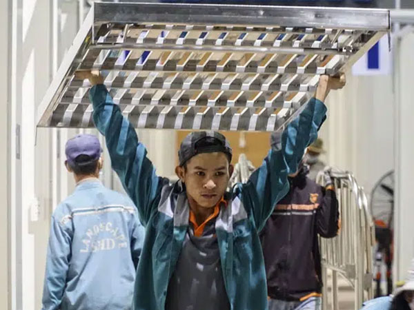 Hàng trăm công nhân đang khẩn trương tháo dỡ nhiều thiết bị y tế tại bệnh viện dã chiến Tiên Sơn (quận Hải Châu, TP Đà Nẵng) để chuẩn bị chi viện tỉnh Hải Dương hỗ trợ xây dựng cơ sở điều trị COVID-19.