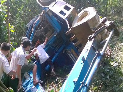 Đang điều khiển máy xúc leo lên sườn đồi để san đường, bất ngờ chiếc máy mất phanh lộn nhào xuống dốc ở độ sâu hơn 50 m khiến nam tài xế bị đè chết tại chỗ.