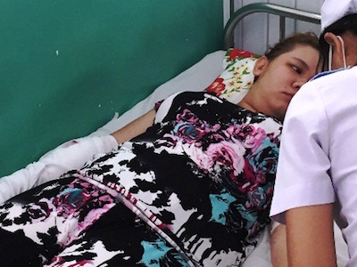 Sau khi xảy ra xô xát ở chợ, chị Yến về nhà thì bị nữ tiểu thương bán sạp liền kề dẫn con rể đến chém trọng thương.