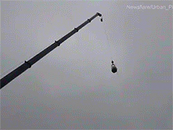 Bí ngô được nâng lên cao 55m trước khi thả xuống, phá nát ô tô.