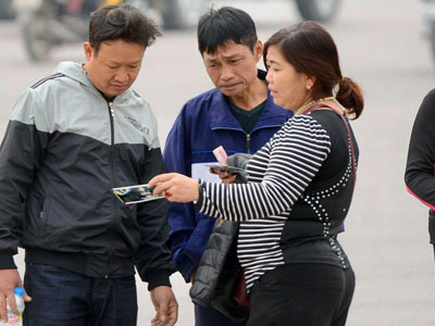 Trong khi giới hâm mộ tiếp tục xếp hàng kéo dài cả cây số chờ đến lượt vào mua vé thì ngoài cửa đã có nhiều người cầm trên tay rao bán với mức chênh khá cao.