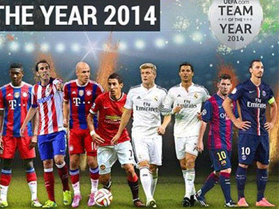 Trang Daily Mail đăng tải đội hình 11 ngôi sao thi đấu xuất sắc nhất châu Âu năm 2014 theo sự bình chọn của 8,6 triệu độc giả trang UEFA.com.