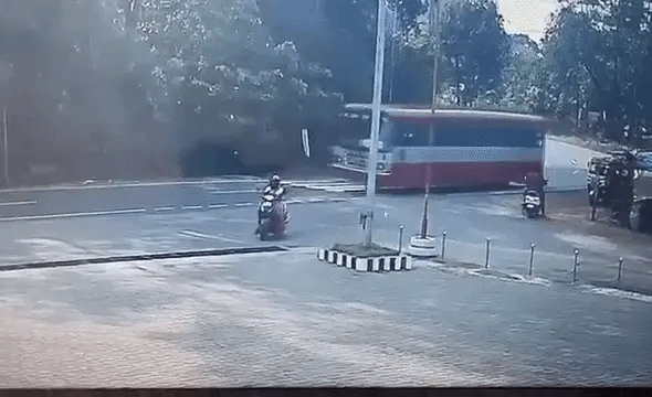 Clip: xe buýt phóng nhanh tại khúc cua, hai chị em nữ sinh bị hất văng xuống đường
