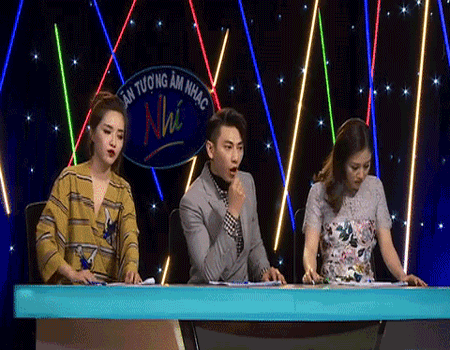 Cảnh cô nàng nhón tay lấy vé vàng đưa cho thí sinh trong khi giám khảo Isaac còn đang say sưa nói khiến khán giả "Vietnam Idol Kids" không khỏi bật cười.