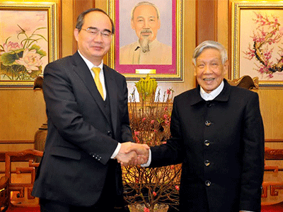 Rời văn phòng làm việc nửa cuối giờ chiều ngày 23 tháng Chạp, Chủ tịch UB TƯ MTTQ Việt Nam Nguyễn Thiện Nhân đến thăm và chúc Tết nguyên Tổng bí thư Đỗ Mười và nguyên Tổng bí thư Lê Khả Phiêu.