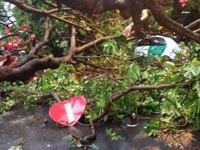 Hai mẹ con suýt chết vì tôn từ biển quảng cáo bay ra đường