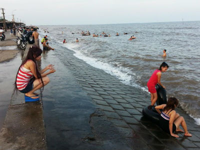 Bãi biển Quất Lâm đông kín người, du khách tắm chung 'bèo, rác'