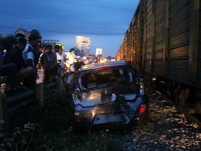 Xe 4 chỗ bị tàu hỏa tông, tài xế tháo biển số