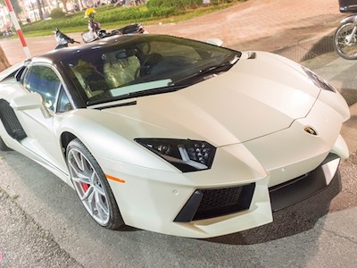 Siêu xe mui trần Aventador Roadster có số lượng chỉ 2 chiếc tại Hà Nội. Trong khi chiếc màu đỏ thường xuyên xuất hiện, chiếc màu trắng khá im tiếng nhưng đã ra biển trắng.