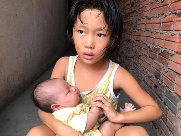 Bố bỏ đi theo vợ nhỏ, bé gái 7 tuổi nghỉ học ở nhà lấy sữa lon pha loãng cho em 2 tháng uống vì không có tiền