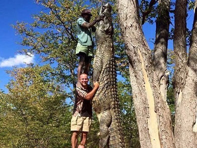 Bức ảnh con cá sấu khổng lồ dài bằng ba người đàn ông bị treo ngược cành cây đột nhiên trở thành hiện tượng mạng trong những ngày gần đây khi nhận được hơn 12.000 lượt chia sẻ.