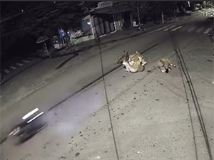 Bò thả rông giữa đêm tối gây tai nạn kinh hoàng cho người đi đường