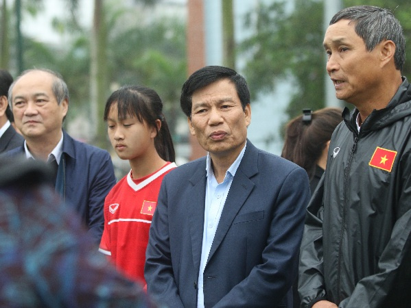Vào sáng 8/3, Bộ trưởng Bộ VH-TT&DL; Nguyễn Ngọc Thiện, Tổng cục trưởng Tổng cục Thể thao Vương Bích Thắng cùng các các bộ, lãnh đạo ban ngành đại diện Liên đoàn bóng đá Việt Nam đã tới thăm và động viên ĐT bóng đá nữ Việt Nam cùng các thành viên đội trẻ đang tập trung tại Trung tâm đào tạo bóng đá trẻ Việt Nam.