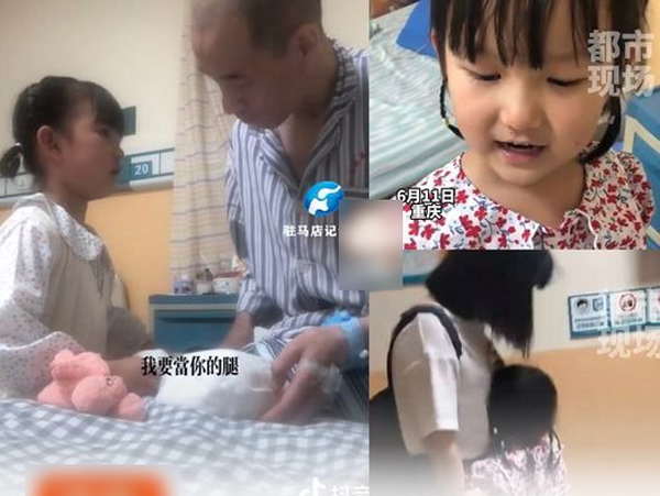 Con gái 6 tuổi ôm chặt lấy mẹ òa khóc khi nhìn thấy đôi chân bị cắt cụt của bố sau cơn bệnh: 'Con sẽ trở thành chân của bố!'
