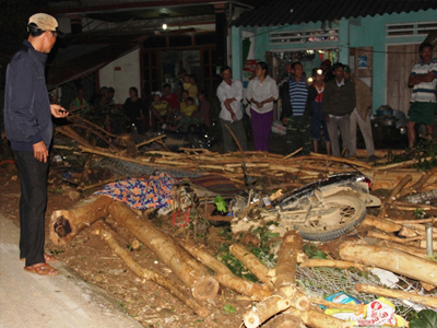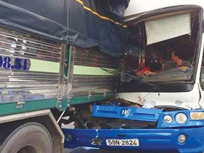 Trong khi đổ dốc, xe tải chở gỗ keo lá tràm bị mất thắng rồi đâm vào 3 xe máy đi ngược chiều. Hậu quả, 1 người tử vong tại chỗ và 4 người người khác bị thương nặng.