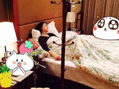 Lý Thần đã chia sẻ hình ảnh Phạm Băng Băng phải truyền nước lên mạng xã hội cá nhân của mình.