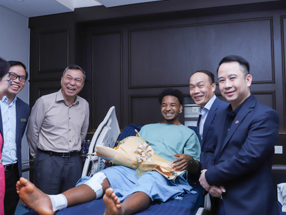 Các bác sĩ Y học thể thao Vinmec chiều 07/01 tiến hành thăm khám lại cho cầu thủ Nguyễn Xuân Son sau ca phẫu thuật thành công được thực hiện vào tối qua.