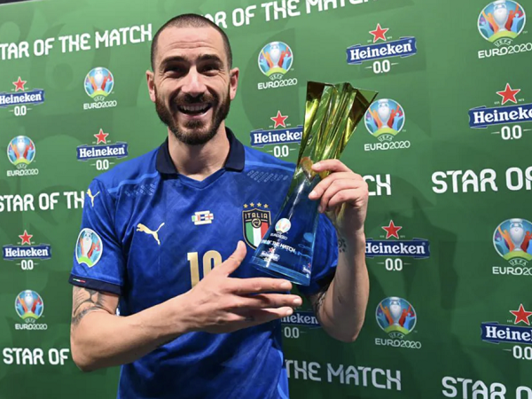 Trung vệ người hùng của tuyển Ý, Leonardo Bonucci nói anh sẽ uống tất cả mọi thứ tối nay khi bước vào phòng họp báo sau chung kết Euro 2020.