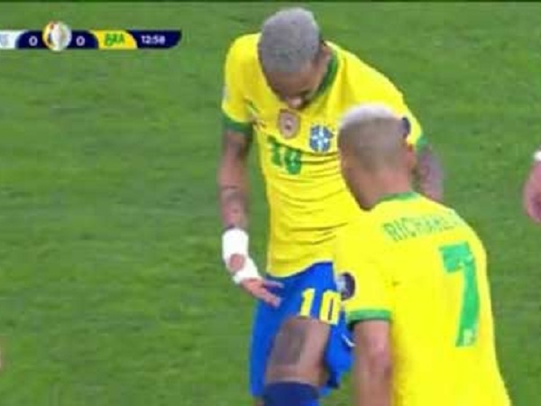 Tính chất căng thẳng của trận chung kết Copa America 2021 được thể hiện rất rõ ràng qua tình huống tiền đạo Neymar bị đối thủ xé rách cả quần.