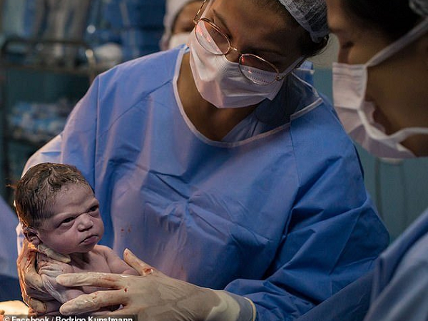 Bé gái vừa chào đời đã 'lườm' bác sĩ tóe lửa gây sốt mạng xã hội