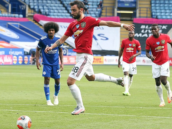 Tiền vệ người Bồ Đào Nha ghi bàn mở tỷ số từ chấm 11m giúp MU đánh bại chủ nhà Leicester City với tỷ số 2-0, qua đó kết thúc Ngoại hạng Anh ở vị trí thứ 3.