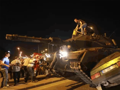 Văn phòng Tổng thống Thổ Nhĩ Kỳ Recep Tayyip Erdogan hôm qua 18/7 đã cho đăng tải đoạn video ghi lại cảnh một xe tăng của phe đảo chính nghiến nát nhiều ô tô và người biểu tình trên cây cầu Fatih Sultan Mehmet bắc qua sông Bosphorus ở Istanbul.