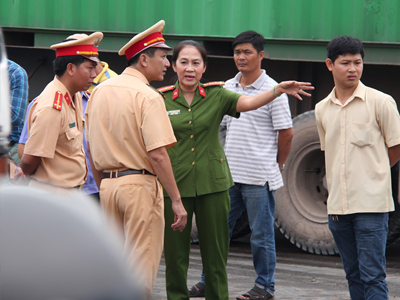 Đại tá Trần Thị Ngọc Thuận, Phó giám đốc Công an tỉnh Đồng Nai đã trực tiếp chỉ đạo xử lý hiện trường một vụ tai nạn giao thông nghiêm trọng xảy ra trên quốc lộ 1 sáng 7.11.