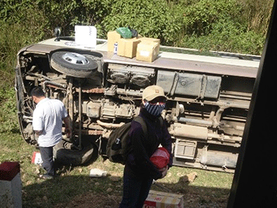 Lật xe khách, 15 người thoát chết trong gang tấc