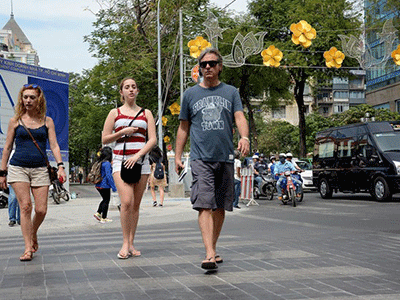 Nằm trong dự án xây dựng quảng trường và phố đi bộ, đường Lê Thánh Tôn (đoạn trước UBND TP.HCM) đã được lát đá cho ôtô, xe máy, xe đạp và người đi bộ qua lại.