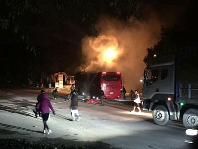 Chỉ sau ít phút nhận được tin báo lực lượng cảnh sát phòng cháy chữa cháy Công an tỉnh Lào Cai đã có mặt kịp thời dập tắt đám cháy đang bùng lên trên xe khách lưu thông ở khu vực km 5 quốc lộ 4D Lào Cai - Sa Pa.