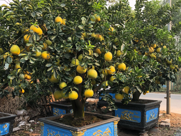 Hơn 1 tháng nữa là đến Tết Nguyên đán Mậu Tuất, thế nên, hàng ngàn gốc bưởi cảnh đã được tập trung dọc hai bên đại lộ Thăng Long thuộc huyện Hoài Đức - Hà Nội. Các cây bắt đầu được đưa lên chậu để chuẩn bị bán cho người dân chơi Tết.