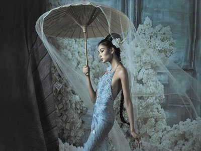Thể hiện bộ ảnh đậm chất ma mị, chân dài 9X diện những thiết kế mới nằm trong bộ sưu tập Ngôn ngữ hoa sắp ra mắt của Hoàng Hải.