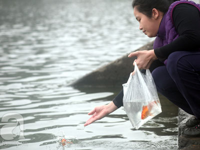 Sáng 11/2 (tức ngày 23 tháng Chạp), nhiều người dân thủ đô đã làm lễ cúng và phóng sinh thả cá chép đỏ tại các khu vực sông hồ để tiễn ông Công ông Táo về trời.